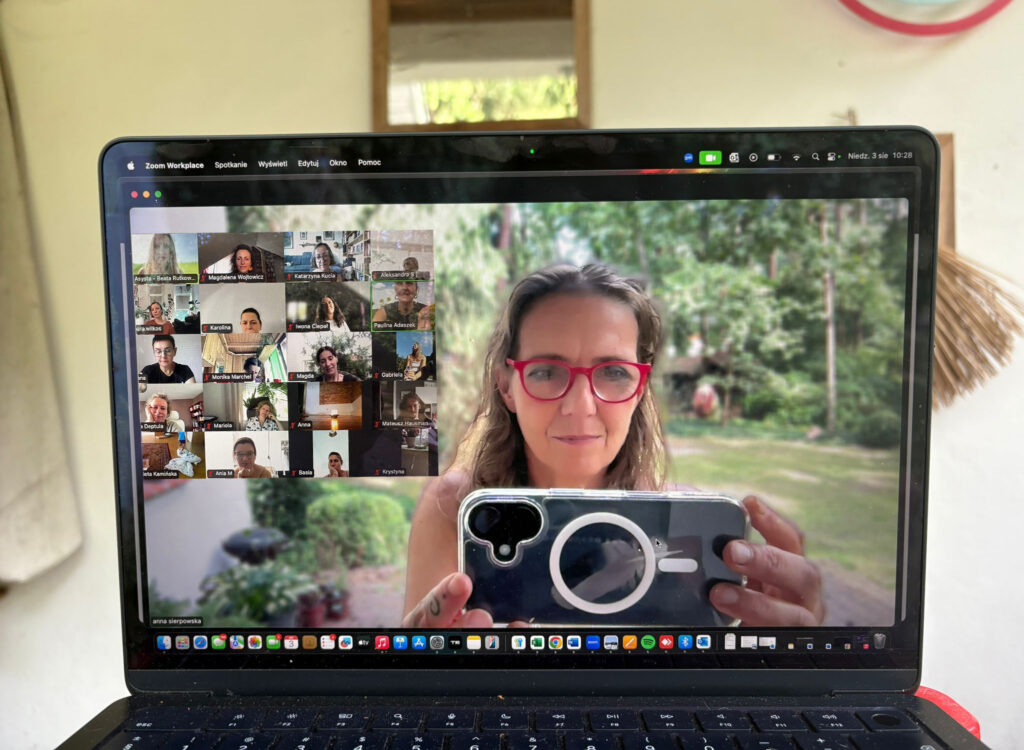 - zaproszeniem do bycia w kontakcie mimo różnych miejsc i lokalizacji dla osób, które praktykują w różnych przestrzeniach – tak to znaczy, że będziemy mogli wspólnie zatańczyć,
